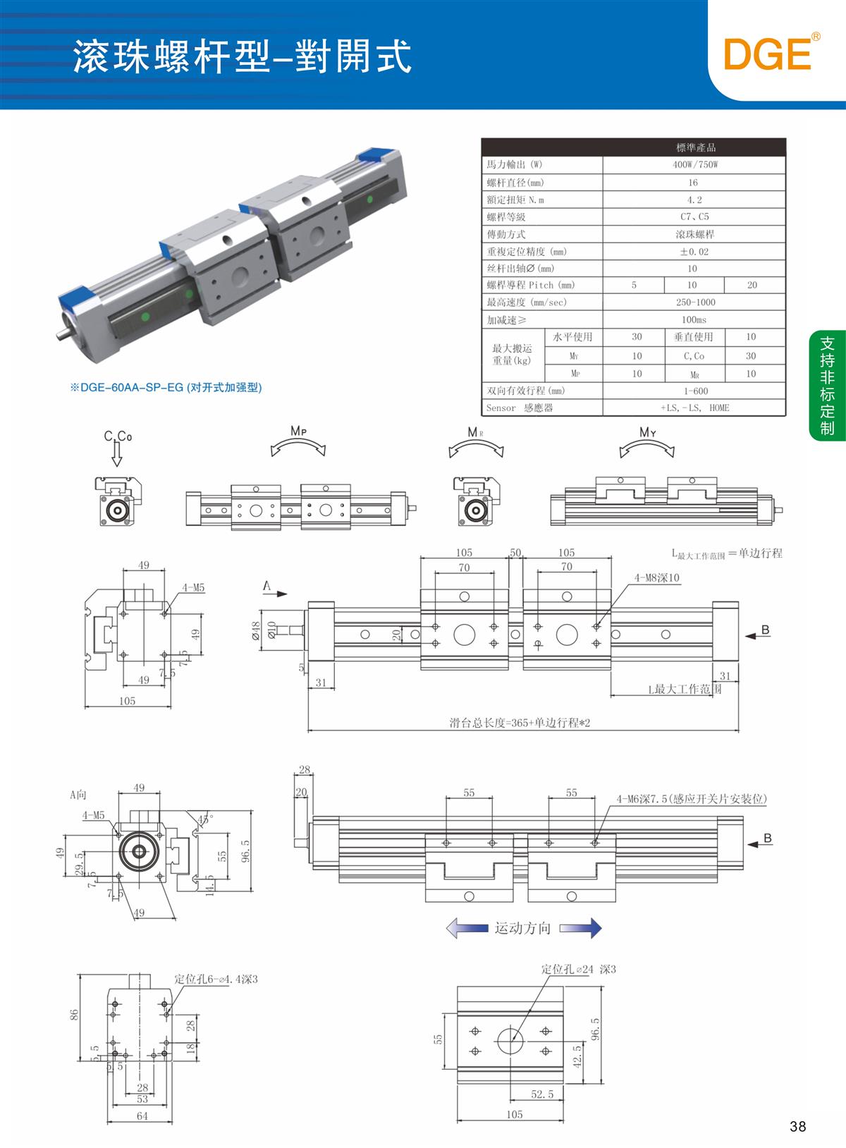 DGE-60AA-SP-EG型號(hào)采用滾珠絲桿傳動(dòng),重復(fù)定位精度可達(dá)±0.02mm遠(yuǎn)高于行業(yè)普通模組±0.1mm的精度水平。這一精度指標(biāo)對(duì)編碼器碼盤(pán)安裝、外殼加工等工序至關(guān)重要